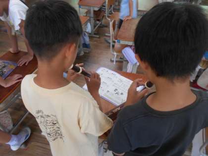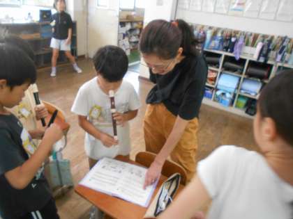 習いたてのリコーダーの練習をクラスのみんなが自主的にしています。