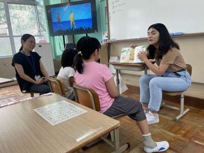 今回の英語学習はルーペ先生とです!みんなでABCダンスを踊り、体も気持ちも温めてスタートしました。次は、英語の絵本の読み聞かせ。1冊目は動物の絵本です。少し変わった絵本で、描かれている動物が本を動かすと動くんです。動く絵にも英語にも興味津々の様子でした。2冊目は、サンドウィッチの絵本です。サンドウィッチに挟むのはどんな具があるかな?想像するのが面白かったようです。日本語と英語の発音の違いを先生に聞きながら上手に発音している場面も見られました。最後には、みんなで食べ物のビンゴゲームをして楽しみました。