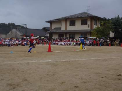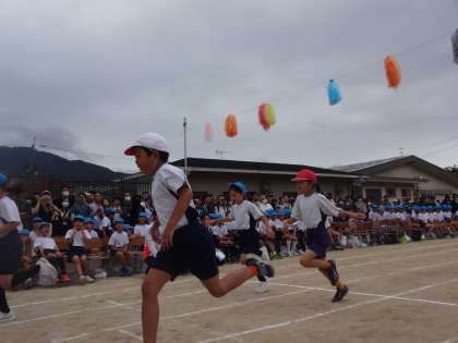 80メートル走では、はじめてのカーブで距離も長くなったのですが全力で力強い走りで本当に頼もしく感じました。HAPPINESSリレーでは、バトンを上手につなぐことが難しく声をかけあって、バトンを渡す向きなど工夫することができるようになって見事なバトンわたしでした。順位よりも最後までバトンをつなぐことを大切に取り組んできた成果が出てよかったです。すこし雨が降ってきたのが心配でしたが、楽しんで踊っている姿や必死に走る姿に私たちも感動しました。