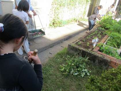 A時程の時は簡単掃除です。星の子さんは、靴箱周りの掃除を担当しています。この日は、花壇の周りが汚れていたのでほうきできれいにしました。新しく植えた、「パンジー」「ヴィオラ」の周りの雑草も抜きました。きれいな花が咲くのが楽しみです。