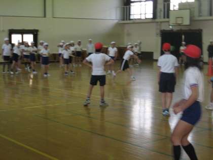 午後から,体育館で学年体育をしました。クラス対抗ドッチボールです。試合前に各クラス思い思いの掛け声をかけて始めました。さあ結果の方はどうなったでしょうか・・・