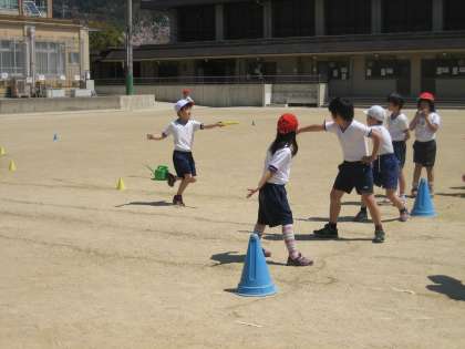 いいお天気の中,体育でリレーの学習をしました。チームで順番を決めたり,リードの練習をしました。リレーは,バトンパスが大事なので,いっぱい練習をしてうまくなるといいですね。