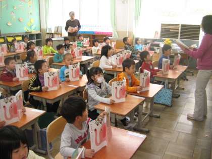 国語の時間に,音読をしました。向こうの校舎の人に聞こえるくらい,大きな声でしっかり読めていました。おうちに帰ったら,保護者の人に聞いてもらって,たくさんほめてもらえるといいね。