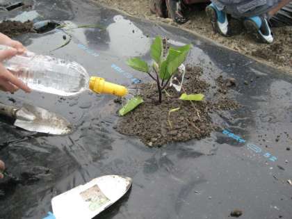 総合の学習で,賀茂ナス,万願寺とうがらし,きゅうりの苗を植えました。おいしい野菜が育つようにみんなで,お世話をがんばります。