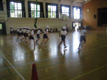 体育館で,シャトルランをしました。シャトルランは,一定の距離を音楽に合わせて往復します。はじめの方は,体力があるので,楽なのですが,何回も往復していると疲れてくるので結構ハードです。さあ,みんなは何往復できたかな?