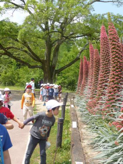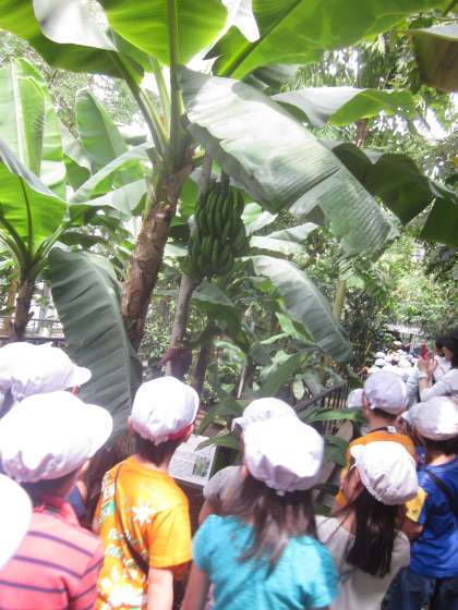 地下鉄に乗り,植物園まで遠足に行ってきました。植物園では,温室に入り珍しい植物をたくさん観覧しました。「うわあ,大きいお花だ」「バナナがなっている!!」「虫を食べる植物だ」など楽しんで観ていました。