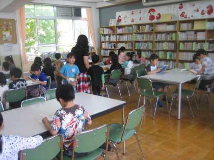 図書室で自分の好きな本を選んで,読書をしました。教室とは,また一味違って,本に囲まれた空間で,静かに読書をするのもいいものです。どんな本を読んだかまたおうちで聞いてあげてください。