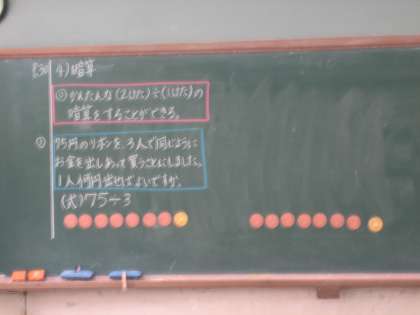 学習のめあては,「かんたんなわり算は,暗算でできるようにしましょう」です。今日は,75÷3を考えました。この問題を解くには,九九はもちろんマスターしておく必要がありますし,あまりのあるわり算の計算も理解していなくてはいけません。算数は,積み上げの教科だということを実感しました。