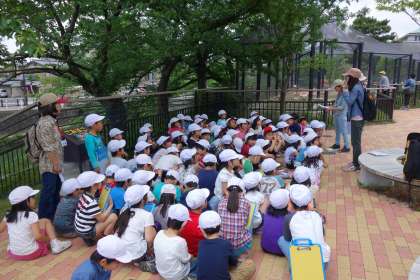 新しく生まれ変わっている動物園は動物を間近に感じることができ,子どもたちは興味津々に動物を観察していました。