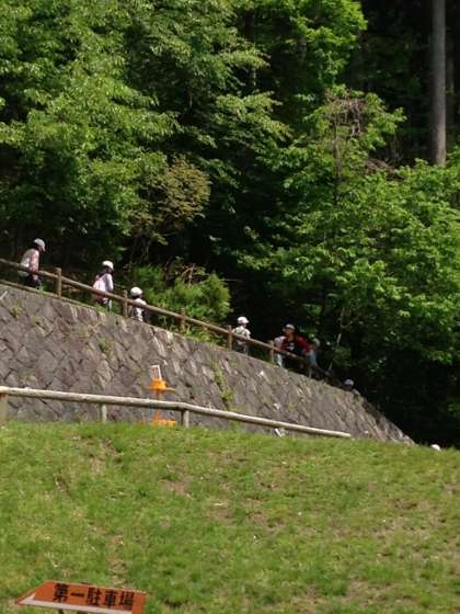 所内オリエンテーリングをしています。グループで相談しながら,質問に答えて進んでいきます。汗ばむくらいの陽気ですが,風はとても気持ちよいです。