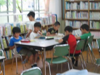 週一回の図書室での読書です。だいぶ慣れてきたようで,手早く選んで,静かに集中して本を読んでいる姿が見られました。