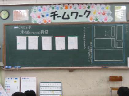 松ヶ崎浄水場に社会見学に行った時の,壁新聞作りをしました。きれいな水ができるまでの仕組みや,自分が気に入った場所についてのことを中心に書きました。子どもたちは,とても集中して取り組んでいました。
