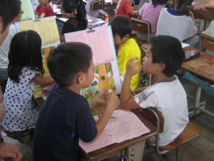 あらかじめ書いておいたメモを,二人組で交流しました。お友達の質問に答えることで,メモを詳しくしていきました。