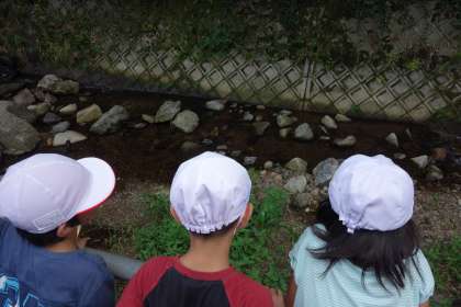 川に魚がいるのを見つけたり,たんぽぽが綿毛を飛ばしたあとを見つけたりしました。