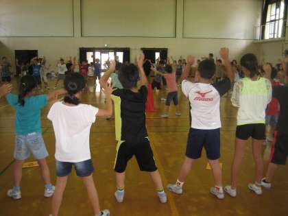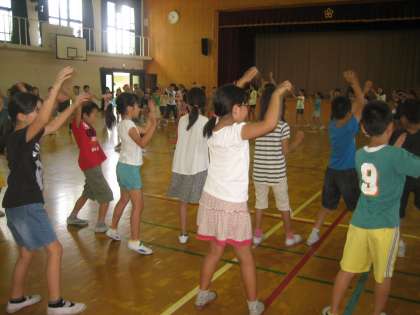 いよいよみさきの家の宿泊学習が近づいてきました。今日は,登校日を利用して体育館でキャンプファイヤーや歌の練習をしました。体調を整えて,元気に出発しましょう。