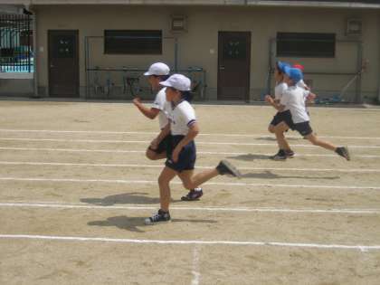 運動場で80m走の練習をしました。「あごをひく」「手をしっかり振る」「最後まで走り切る」などのポイントを意識しながら走りました。