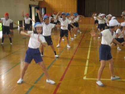 新しい振り付けを覚えました。何度も繰り返し練習していくことで,体が自然と覚えていっている様でした。今度は立ち位置を確かめます。