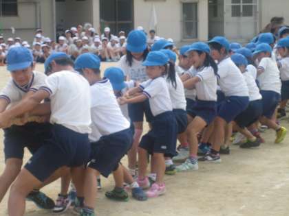 エントリー種目の綱引きの練習をしました。太い綱は持ちなれないので,少し苦労している感じでした。