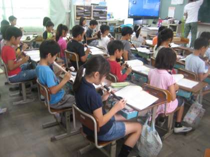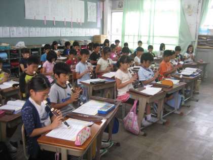 音楽の導入で,「もののけ姫」のリコーダーの演奏をしました。その後,学習発表会に向けて,リコーダーの基本的な指使いの練習をしました。