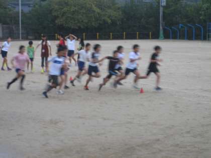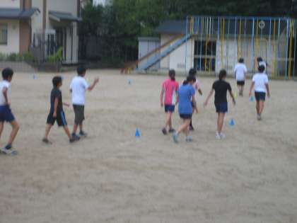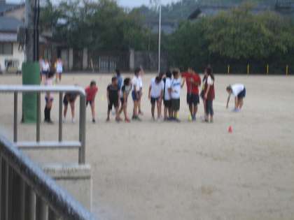 小雨の中,頑張って練習をしていました。ジョグを交えながら真剣な表情で走っていました。