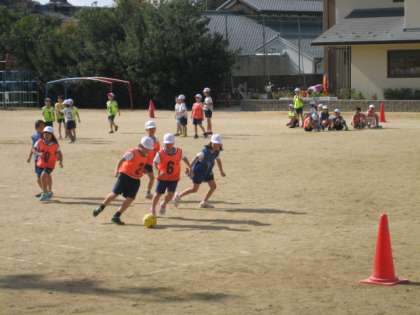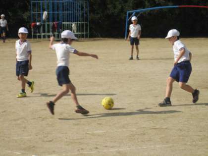 だいぶサッカーのルールやゲームの進め方に慣れてきました。今日は,最初にチームごとに練習をしました。自分たちでめあてをもって,練習をしました。その後,その成果を試すべくゲームをしました。