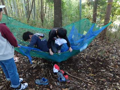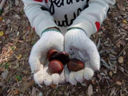 脇の山でたくさん体を動かして遊んでいた子ども達ですが,まつぼっくり,大きなどんぐり,キノコ,栗,鹿のフンなど,たくさんのことを発見していました。
