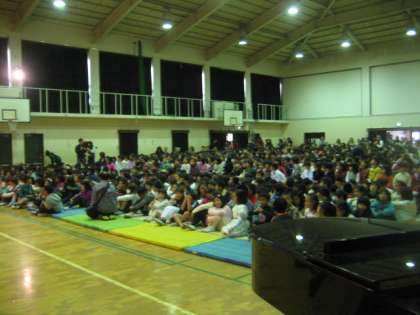 子どもたちの全体の様子と,児童会の初めの言葉です。