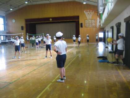 やわらかいボールなので,怖がらずに思い切ってプレーできるのが,このスポーツの良いところです。攻め方や守り方を工夫してゲームを楽しみました。