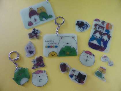 昨年度も作ったプラ板を今年も作りました。絵や工作が大好きな人たちが集まっているので,いつもとてもすてきな作品を作っています。細かいところまで工夫して,世界で一つの作品ができました。キーホルダーをつけて早速飾っている人もいました。