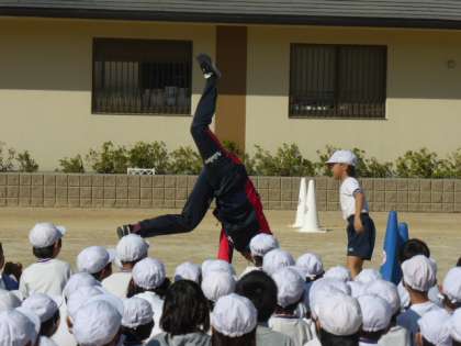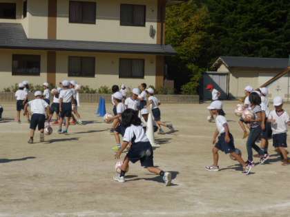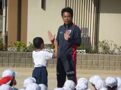 2年生は10月13日(火)の1・2時間目に京都サンガFCのコーチに「手押し相撲」や「まねっこかけっこ」「ドリブルゴール」などのプログラムを通して,自ら考え,気づき,行動し,周りにも目を向け,思いやる大切さを学びました。