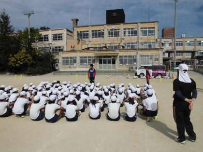 京都サンガFCの方に来ていただいて,いろいろな活動を教えていただきました。