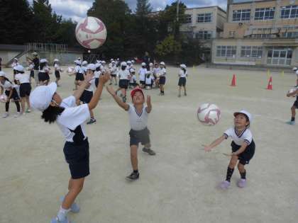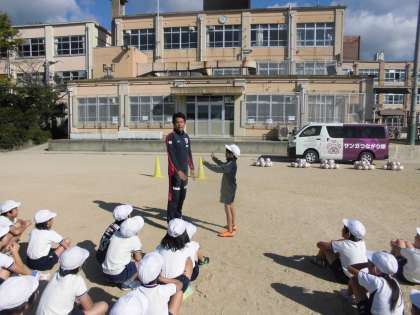 3年生は10月14日(水)の3・4時間目に京都サンガのコーチに,いろいろなボールを使ったゲームを教えて頂きました。