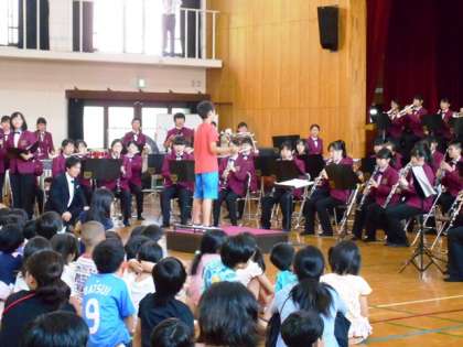 今年も北稜高等学校の吹奏楽部の皆さんをお招きして,音楽鑑賞を行うことができました。80余名の部員の皆さんによる本格的な吹奏楽の演奏に,全校児童が聴き入りました。途中には,イントロ当てクイズや指揮者体験など,小学生を惹きつけるプログラムも盛り込んでいただき,子どもたちも大喜びでした。