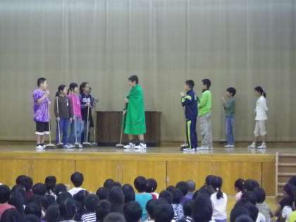 始業式の後は,京都市動物画コンクールの受賞者の表彰と,児童会からの10月の児童会目標の発表がありました。10月の児童会目標は,
