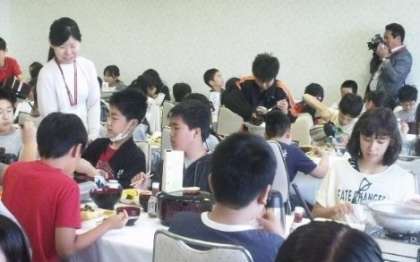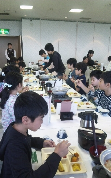 2日目が始まります。全員,時間通りに集合して朝食です。