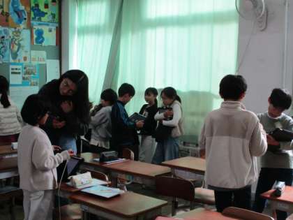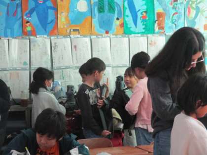ルーペ先生が来られるときは、できるだけ先生との会話を通してきれいな発音を聞いてほしいと思っています。早いうちからネイティブの発音を聞いている子は、やはり話す時もきれいな発音であることが多いと思います。自分から積極的に話しかけていく子も見られ、4年生としての自覚が出てきたなと感じます。ところが自分から話に行かず、先生に話しかけられても戸惑う子も少なからずいます。その様子を見ていて、せっかくの機会をもったいないことをしているなと思います。高学年や中学校では、ALTの先生との会話が評価に入ります。しっかりと度胸をつけておくことが大事なのではないかと思います。少しずつ自分を変化させていってほしいものです。