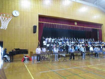 本番が近づいてきて、学習発表会の練習により一層熱が入っています。合奏やグループでの発表などすべてを通して練習しています。舞台に立っている人はもちろん、舞台袖にいる人も心を一つに、最高の発表になるように頑張っています。合奏では、指揮を一生懸命見ながら、周りの音を聞いて取り組んでいます。