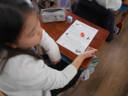 教室で振り返りをしました。