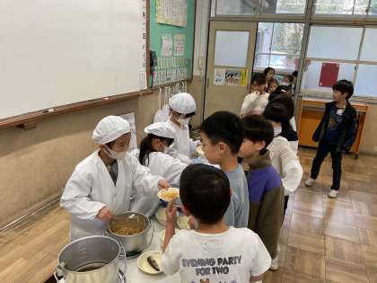 【1年】給食当番の様子