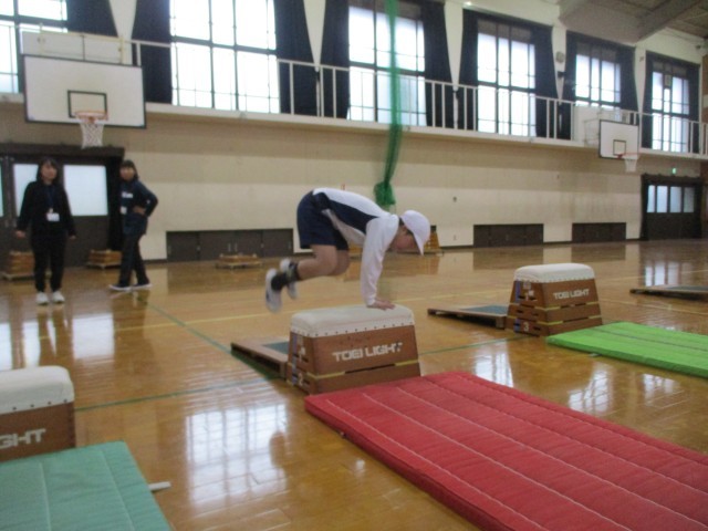 体育では、跳び箱運動にチャレンジ中。