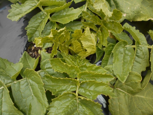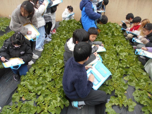 聖護院かぶとだいこんが育ち、緑の葉を茂らせています。