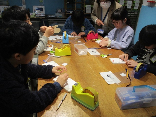 工房学習では、京セラ株式会社様の「セラミックスで電気を起こそう」という企画で、LED点滅装置の製作をさせていただきました。今回は圧電素子によりLEDを点滅させるというものでした。薄い圧電素子が電気を発生させること、LEDが直列につながっているのに点滅するということを、「不思議だな。」と思いながら、一生けん命作りました。作り始めは不安げな表情の子が多かったのですが、多くの先生方に教えていただきながら無事作り上げました。LEDが点滅した瞬間には、とても大きな歓声が上がりました。