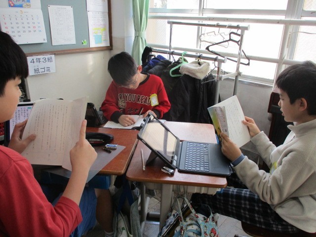 また、懇談会でお話してきたことではありますが、四年生の授業でタブレットPCを多くの機会に使ってきました。最近では、音楽の楽器の音を調べたり、国語の教材文を読み深める際に使ったりしてきました。年生になると、タブレットによる家庭学習も増えると思います。これを契機に、スマートフォンやタブレットがほしいという声が子どもたちから上がることもあるでしょう。学校の端末で充分だと思うのですが、「みんな持ってる。」という言い方もします。そんなこともないのですが、購入する・しないよりも重要なことは、寝る部屋にスマホやタブレットを持ち込まないなど、生活習慣の乱れ、家庭学習の阻害につながらないようにすることです。スマホ、タブレットはリビングで。この一線を越えてしまって大きく学力が低下した子をたくさん見てきました。ご一考ください。