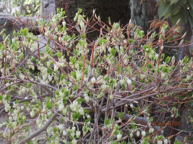 校内を見ていると、小さな白いツボ状の花をいっぱいつけている木がいたるところにあります。ドウダンツツジです。今が花の盛りで、秋には見事な紅葉が見られます。「ドウダンツツジ」は、「灯台躑躅(とうだいつつじ)」が変化したと言われています。「灯台」とは、岬の灯台ではなく、ろうそくを灯す台のことで、結び灯台というものがありました。34本の棒を結びその上にろうそくの台を置いた、その結ばれている姿がこの木の枝ぶりに似ている、というところから名付けられました。確かに一か所から複数の枝が出ています。「ドウダンツツジ」と検索すると「満天星」という漢字も出てきます。これは中国故事に由来しています。今、ちょうど満天にきらめく星のように花が咲いています。