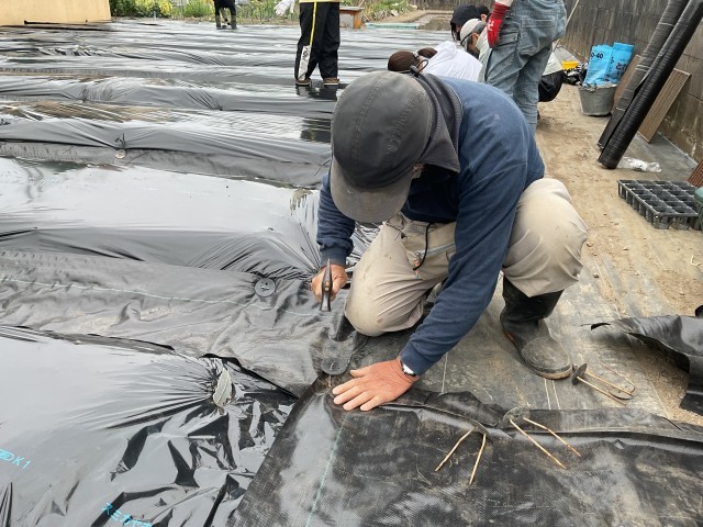 夏野菜を育てるために、肥料を混ぜて土作り、畝作り、あぜづくりを何日かかけて、畑の先生と一緒に活動しました。マルチ張りと防草シートを学校の先生も一緒になって上手に張り、やっと完成しました。これで雨が降っても大丈夫な立派な畑になりました。これから明徳小学校の子どもたちがおいしい野菜を育てるためにお力をかしていただきありがとうございました。来週から夏野菜を植えるのが楽しみですね。