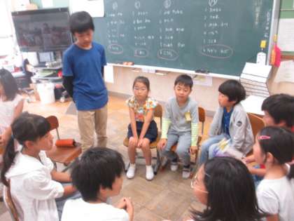 6月7日に今年度初めてのたてわり活動を行いました。1年生から6年生までで8人ほどのグループになり,月に一回ほどそのたてわりグループで遊びます。今回は,自己紹介を行ったり,次回やりたいことを考えたりした後,簡単なゲームをしました。最初は緊張気味だった子どもたちも,だんだんと慣れてきて,楽しそうに活動していました。5・6年生のお兄さんお姉さんが下の学年の友だちにやさしく接している姿が見られ,今後の活動が楽しみです。