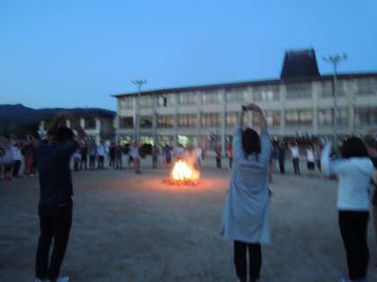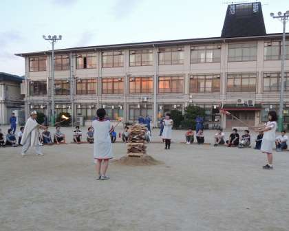 キャンプファイヤーを行う機会は,本校では,4年生での「みさきの家」5年生での「花背山の家」での宿泊学習の時にあります。小学校生活で1・2回しかない貴重な活動を有意義なものにするために,まずは指導者が体験しておく必要があります。