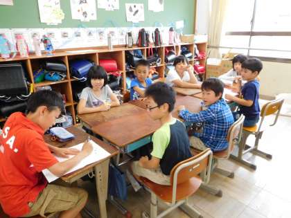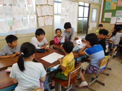 今年度からたてわり活動が始まりました。1年生から6年生までがたてわりグループに分かれて活動します。第一回目の顔合わせでは,6年生が中心となり,遊びのアンケートや名前覚えゲームなどをしました。これから5年生として6年生を支えながら,下級生を引っ張っていってほしいと思います。