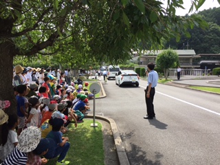 7月8日に自転車教室を行いました。岩倉自動車教習所で教習所の先生や警察官,JAFの方々にも来ていただき,自転車を安全に乗るためにいろいろなことを勉強しました。まずは,どんな事故が起こりやすいか,デモンストレーションを交えながら,教えてもらいました。普段の生活の中にもいろいろなところに危険が潜んでいる事が分かりました。次に,低学年と高学年に別れ,実際の自転車に乗っての実技や,交通ルールを正しく理解できているかのテストを行いました。高学年の人にはテストの結果をもとに,自転車の免許証が後日配布されます。また,JAFの方々の協力で車の衝突体験も行われました。今回学んだことをいかして,これからも安全に気をつけて自転車に乗ってほしいです。