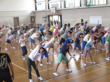 子どもたちが楽しみにしている夏休みまで,あと少し。夏休みと言えば…「ラジオ体操」。そこで,中間休みや朝休みに,みんなでラジオ体操をしています。13日は高学年の人たちが参加してくれました。手の先や足の動きなどいろいろなところを意識してラジオ体操をするとけっこういい運動になります。ラジオ体操をしっかりと覚えて,夏休み中のラジオ体操にも継続して参加してほしと思います。
